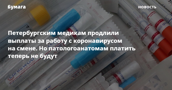 Беглов исключил из перечня медиков, которым положены выплаты, патологоанатомов. В новой редакции постановления также говорится, что выплаты не положены всем сотрудникам учреждений, проводящих лабораторную диагностику COVID-19, кроме сотрудников консультативно-диагностических центров, в том числе детских. Это решение не комментировали.