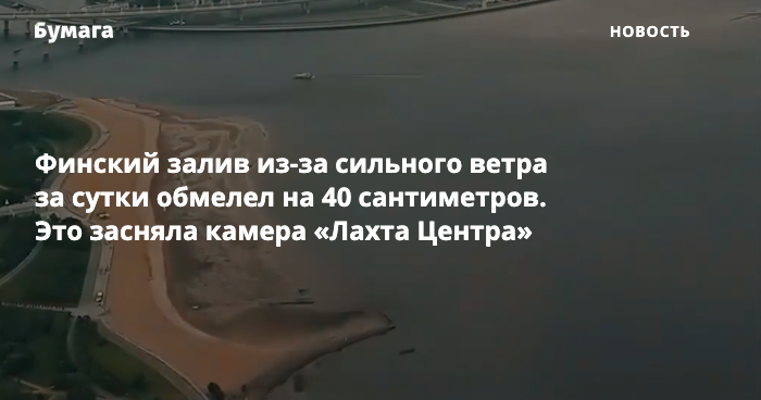 Камера, установленная на «Лахта Центре», зафиксировала, как из-за сильного ветра за сутки обмелел Финский залив.