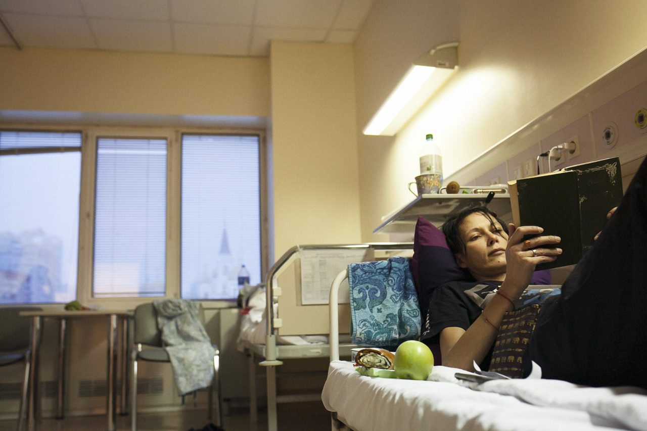 Ира читает книгу в палате онкоцентра после биопсии печениФото: Дарья Асланян для ТД Но, когда подошло время второй биопсии, Ира уже ни на что не надеялась. В назначенный день вместе с Вовкой поплелась в онкоцентр. Гном ни за что не хотел отпускать маму — всю процедуру просидел рядом, а Ира изо всех сил старалась не крикнуть от боли, чтобы не напугать его. Но, к ее удивлению, обследование показало улучшения. Экспериментальные таблетки (которые после изучения тонны информации и нескольких онлайн-консультаций с онкологами Ира стала принимать на свой страх и риск) сработали, — решила она. Вернувшись домой, Ира села на кровать и, махнув рукой в сторону стопки неглаженого белья, со смехом сказала: «Придется теперь гладить, а то я уж надеялась оставить это кому-нибудь».