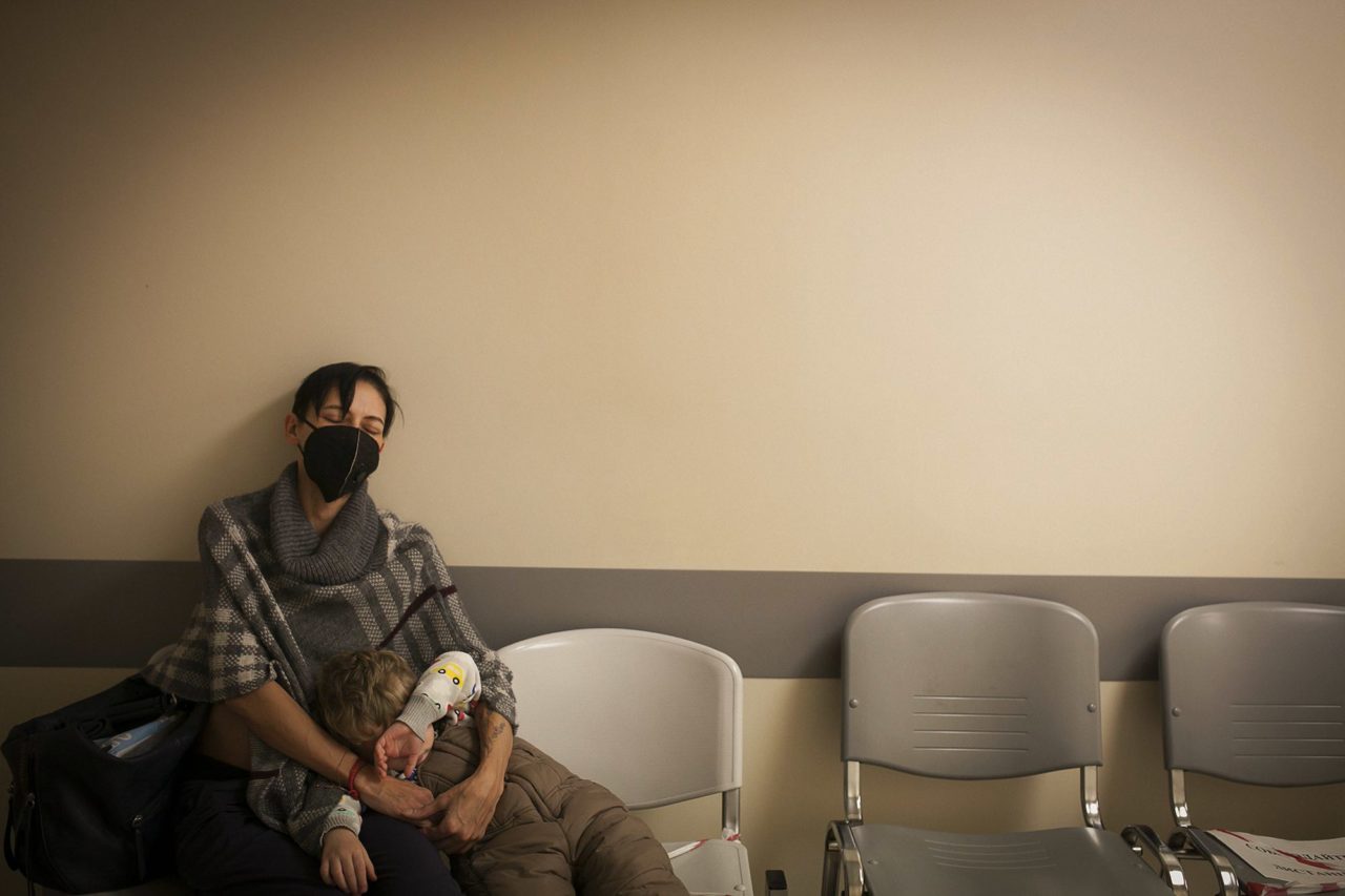 Ира с младшим сыном Вовой уснули в очереди в коридоре онкоцентраФото: Дарья Асланян для ТД
