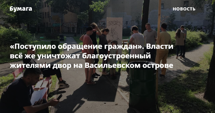 «Поступило обращение граждан». Власти всё же уничтожат благоустроенный жителями двор на Васильевском острове