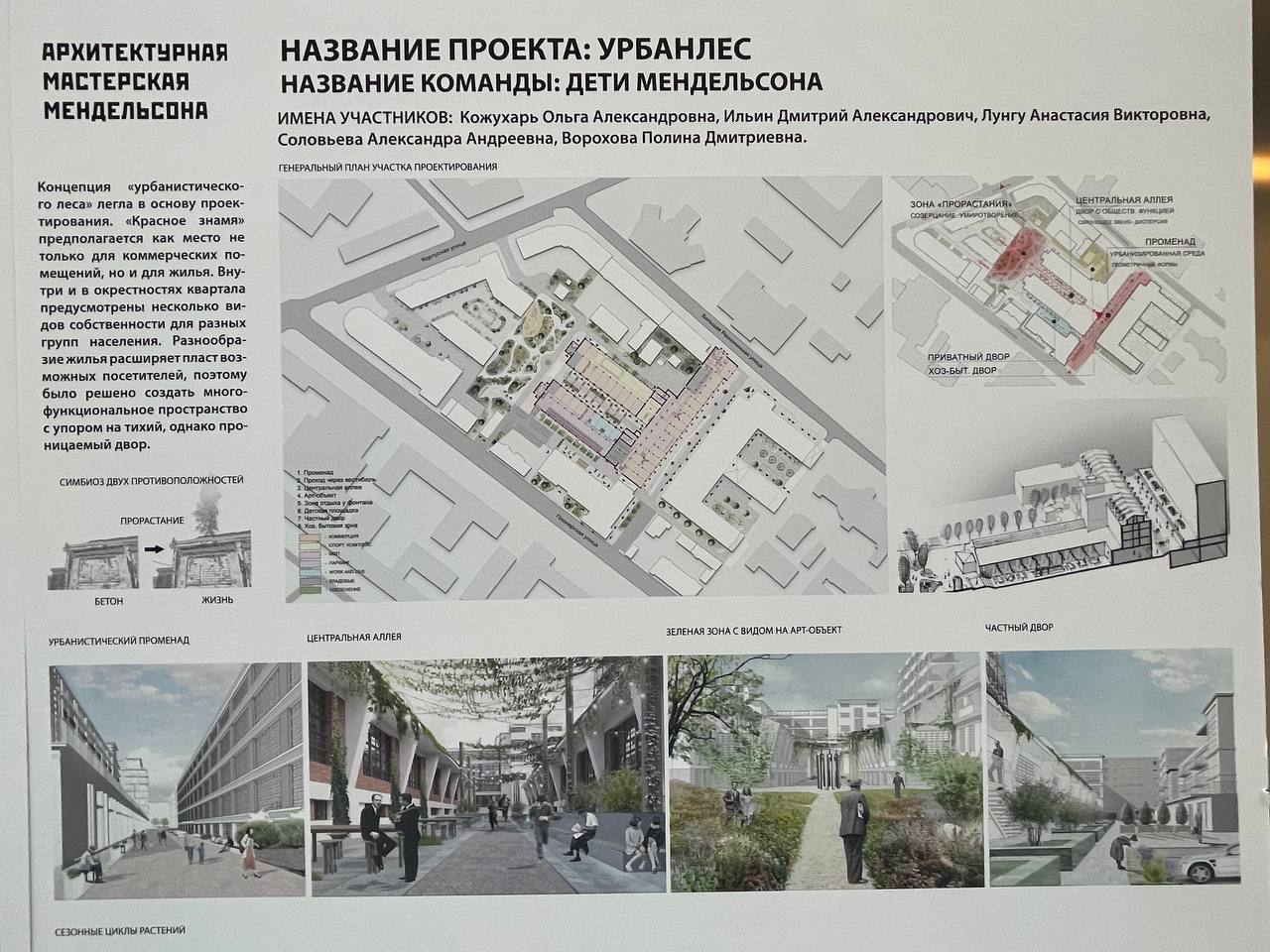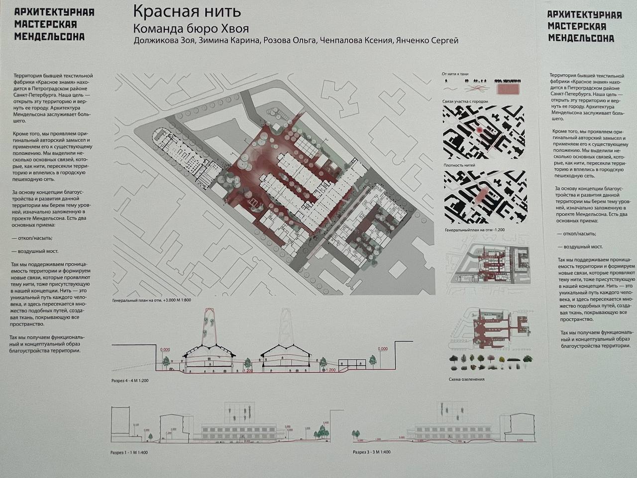 «Так мы поддерживаем проницаемость территории и формируем новые связи, которые проявляют тему нити, тоже присутствующую в нашей концепции», — следует из информации на проектном стенде «Хвои».