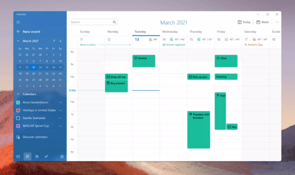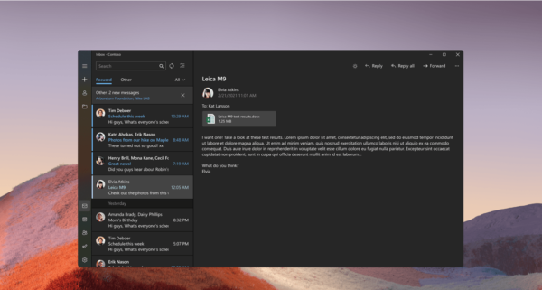 Microsoft переработала дизайн программ в стиле Windows 11, добавив окнам типичные для системы закругления и изменив многие элементы интерфейса. Как и другие приложения, «Почта» и «Календарь» адаптируются под выбранную пользователем тему операционной системы.