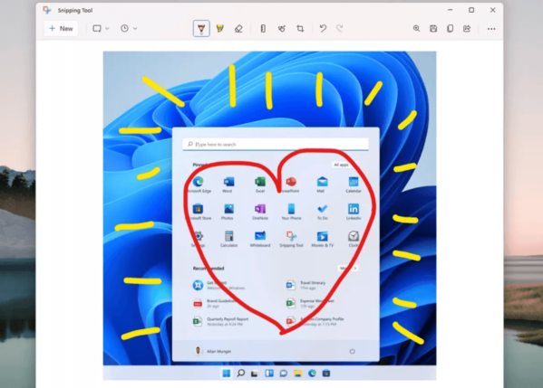 Обновлённая утилита Snipping Tool заменила собой предыдущую одноимённую старую программу и функцию Snip & Sketch. Приложение получило обновлённые анимации и расширенные возможности по редактированию скриншотов. Утилиту можно вызвать комбинацией клавиш Win + Shift + S после чего откроется окно с опциями, позволяющими, в том числе, снять скриншот с задержкой по времени.