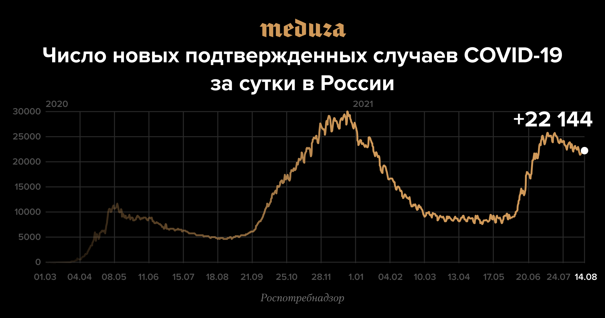 - 13 августа власти Москвы опубликовали данные о смертности в июле 2021 года. За месяц в городе умерли 17 237 человек — на 6464 больше, чем в июле 2020 года. Власти связывают рост смертности с распространением штамма коронавируса дельта.