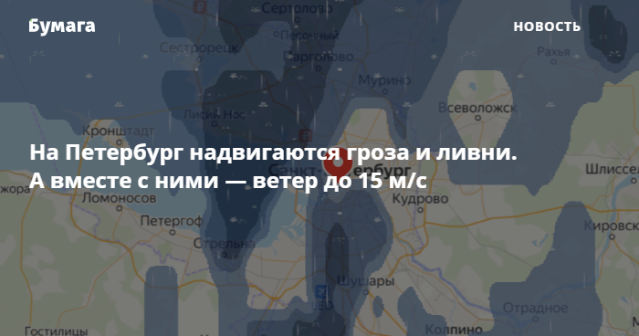 На Петербург надвигаются гроза и ливни. А вместе с ними — ветер до 15 м/с