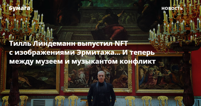 Тилль Линдеманн выпустил NFT с изображениями Эрмитажа… И теперь между музеем и музыкантом конфликт