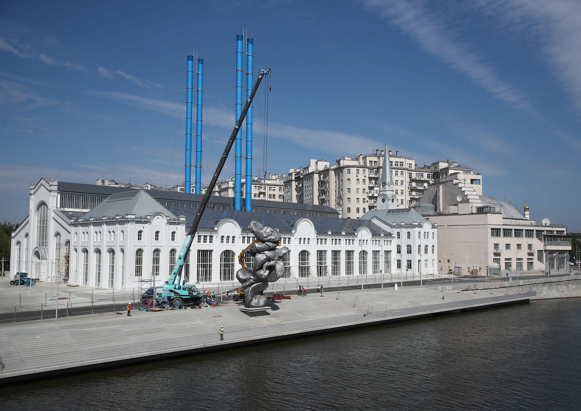 Антон Новодережкин / ТАСС В Москве напротив Дома культуры «ГЭС-2» устанавливают скульптуру швейцарского художника Урса Фишера «Большая глина № 4».Эта отлитая из алюминия 12-метровая композиция — копия комка глины, который Фишер разминал в руках. «Монументальная по своим масштабам работа превращается в символ творчества, простоты и действенности человеческого жеста», — описывают работу в «ГЭС-2». Некоторые жители Москвы раскритиковали арт-объект за неприглядность. «Большая глина № 4» простоит на набережной несколько месяцев.