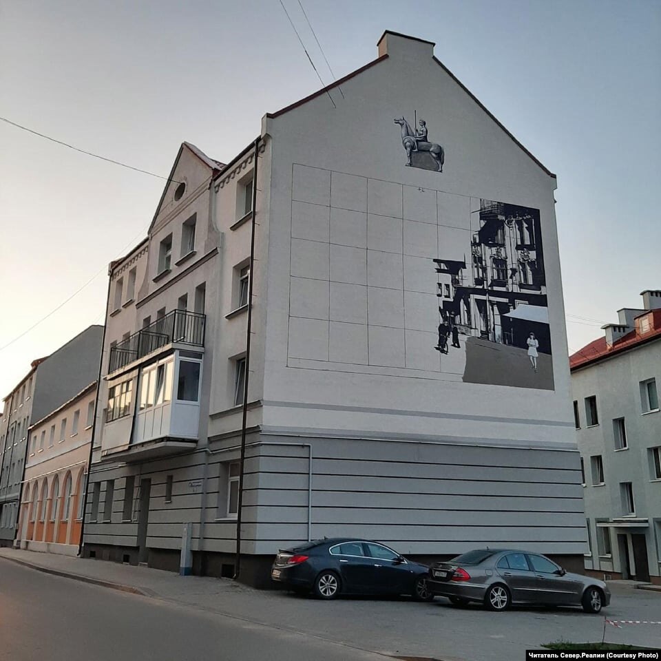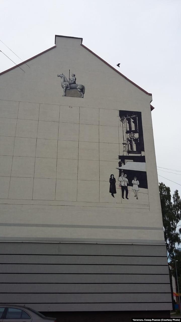 В Черняховске Калининградской области на фасаде дома 15 по Театральной улице вместо панно с историческим видом на улицу Инстербурга (прежнее название Черняховска) появился рисунок с изображением главы города Сергея Булычева, шагающего с женой и детьми по одной из улиц. Об этом корреспонденту Север.Реалии сообщили местные жители.