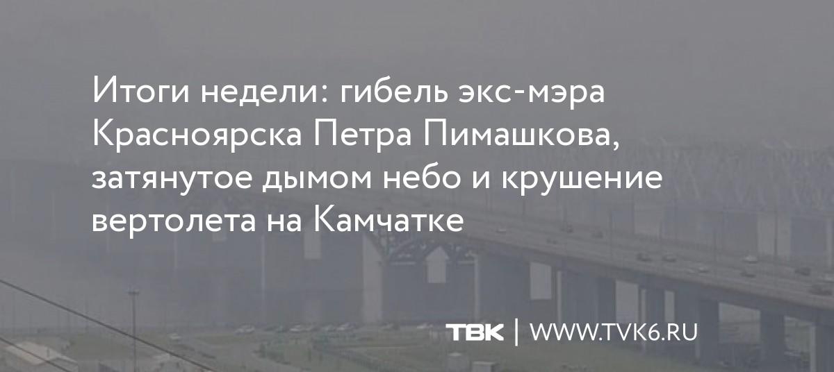 Итоги недели: гибель экс-мэра Красноярска Петра Пимашкова, затянутое дымом небо и крушение вертолета на Камчатке