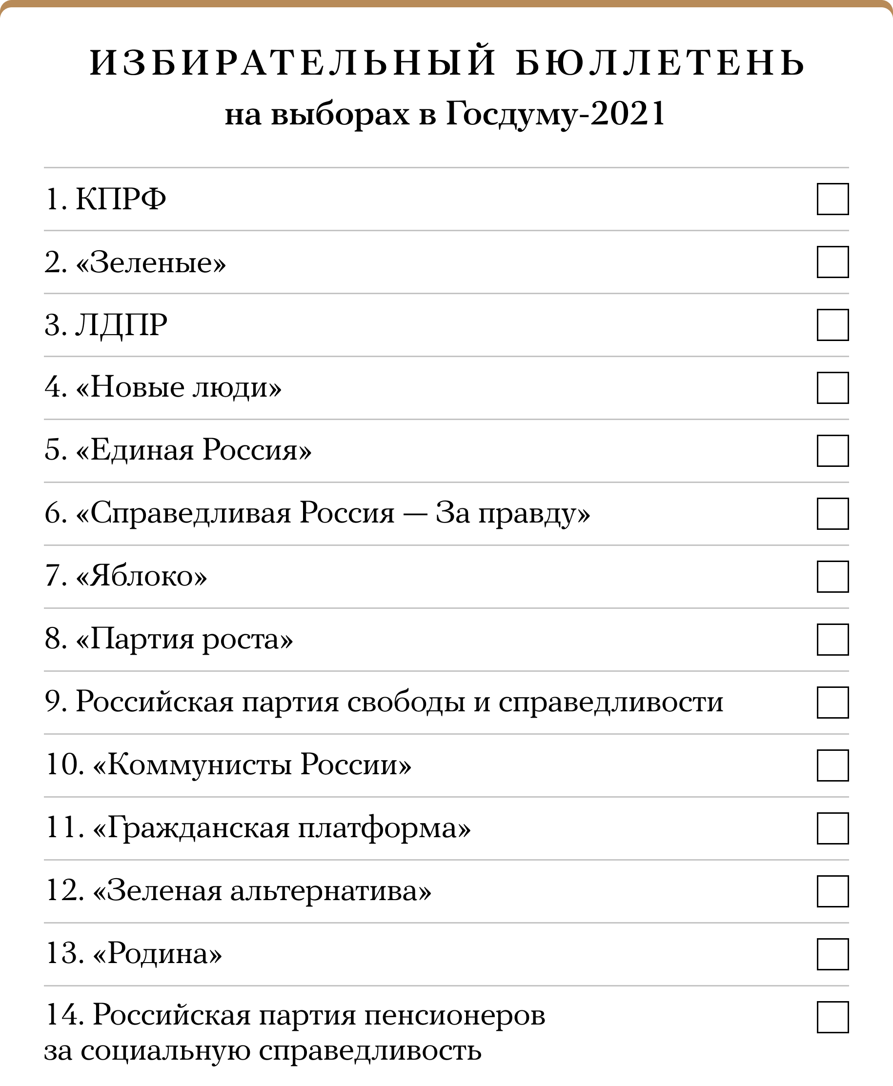 Как будет выглядеть бюллетень на выборах в Госдуму 2021 года