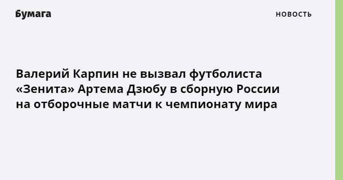 Обновление. Позднее журналисты спросили Карпина, почему он выбрал именно такую линию нападения. Тренер ответил, что Дзюба и форвард «Спартака» Александр Соболев, тоже не получивший вызов в сборную, находятся «не в лучшей форме». «Артем даже не попал в основу „Зенита“. Для того, чтобы играть в сборной, нужно играть за клуб», — сказал Карпин.