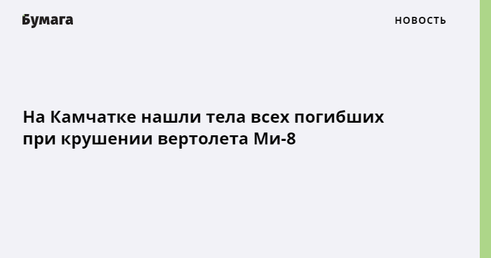 На Камчатке обнаружили тела всех погибших при крушении вертолета Ми-8 пассажиров. Об этом сообщает председатель правительства региона Роман Василевский.