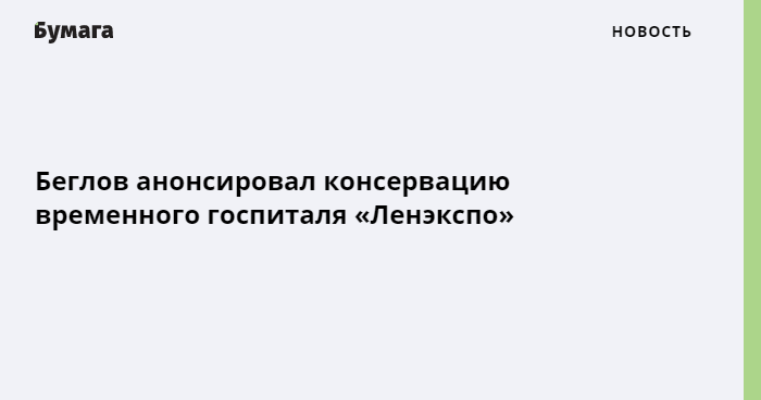 Все отделения госпиталя закроются, за исключением павильона № 5. «Это не значит, что третья волна [коронавируса] закончилась, 1800 инфицированных в сутки — это по-прежнему очень много. <…> Мы начинаем спускаться с очень высокого плато», — заявил Беглов.