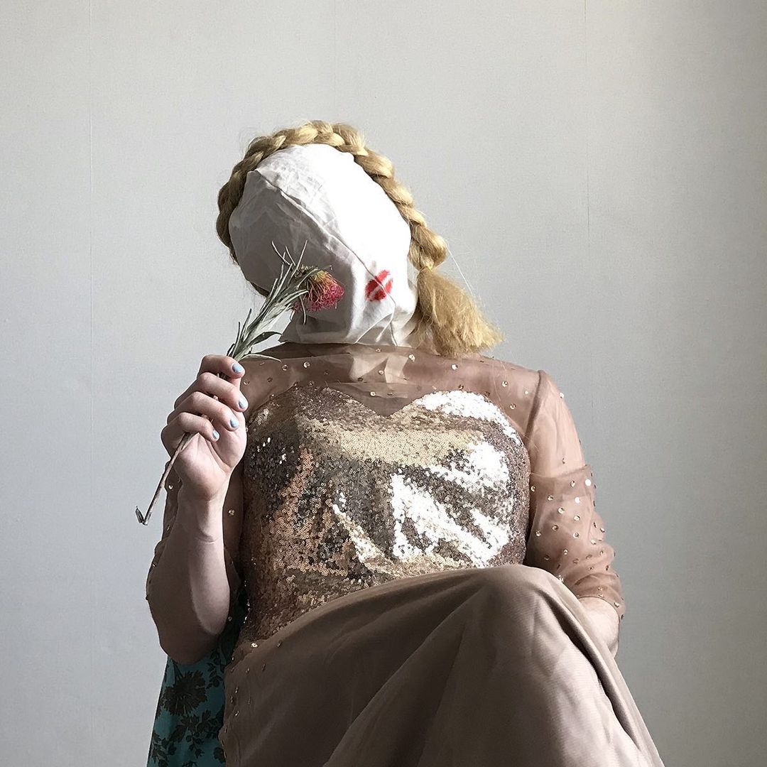 The art project also includes three series of portrait photographs inspired by homophobic name-calling and notes passed in school, titled “Pedik” (“Fag”), “Baba” (“Sissy”), and “Goluboy!” (“Blue!” — a slang term for a gay man). “I make them real, I turn into them. When I was a child it was painful and unpleasant, but now I can try these images on for myself, show that they’re stereotypes, I exaggerate them on purpose,” the artist explains. “On the one hand, a queer character with a hidden face is already a kind of stereotype. On the other hand, it’s a generalized image. I believe it’s easier to associate yourself or your friends with this. And to just think about this theme without ties to a specific person.”