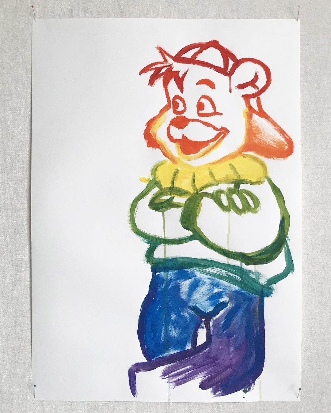 Despite the artist’s hidden identity, PASHA remains a deeply personal project. Its many works include a series of larger drawings and smaller graphics that incorporate well-known animated Disney characters, like Winnie-the-Pooh. These childhood images are displayed alongside anti-gay insults; words and phrases the artists “heard from his peers” back in the days when he used to watch Disney cartoons on TV. “These cartoons really helped me to cope with external aggression and were a form of escapism,” he recalls.
