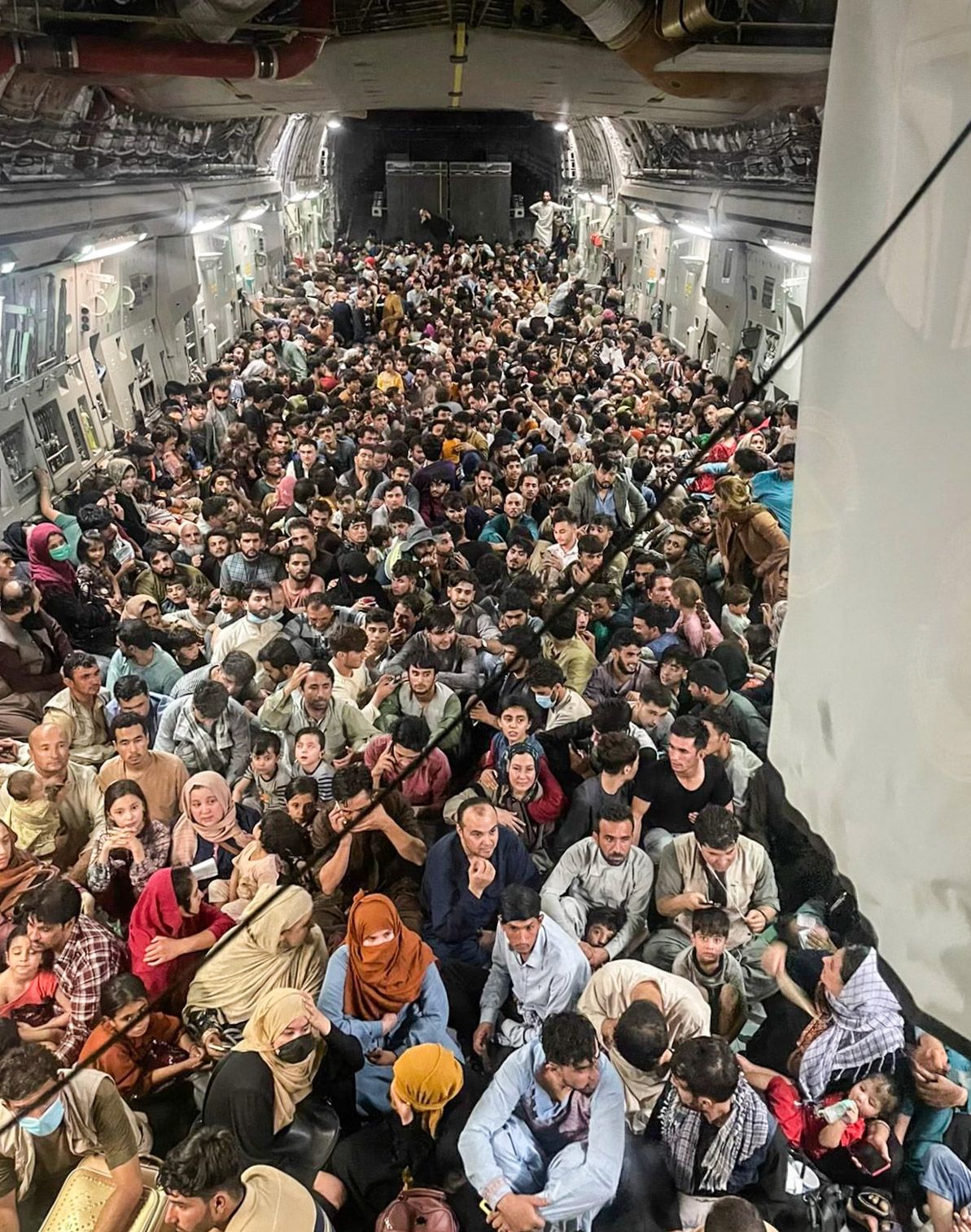 Эвакуация прошла вечером 15 августа. Изначально экипаж самолета не собирался брать с собой столько пассажиров, но перед взлетом, во время паники в аэропорту, люди стали запрыгивать на полуоткрытую рампу самолета. Пилоты не стали выгонять людей и взяли их с собой. Все беженцы разместились на полу самолета и благополучно долетели до авиабазы в Катаре.