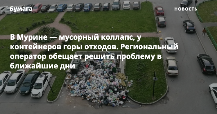 В администрации МО «Мурино» «Бумаге» не смогли оперативно прокомментировать ситуацию. В «Управляющей компании по обращению с отходами» «Бумаге» сообщили, что ситуация с невывезенным мусором сложилась из-за смены перевозчика, и пообещали убрать всё в течение двух-трех дней.