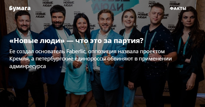 Партия «Новые люди» — самая молодая из участвующих в этих выборах. О ее создании объявили лишь в январе прошлого года, а уже в марте партию зарегистрировал Минюст. Такая скорость породила мнение, что «Новые люди» — проект Кремля, созданный с целью оттянуть голоса оппозиции. Партия позиционировала себя как оппозиционную и умеренно критиковала курс властей, но беспрепятственно получила регистрацию, в отличие, например, от «Партии прогресса» Алексея Навального.