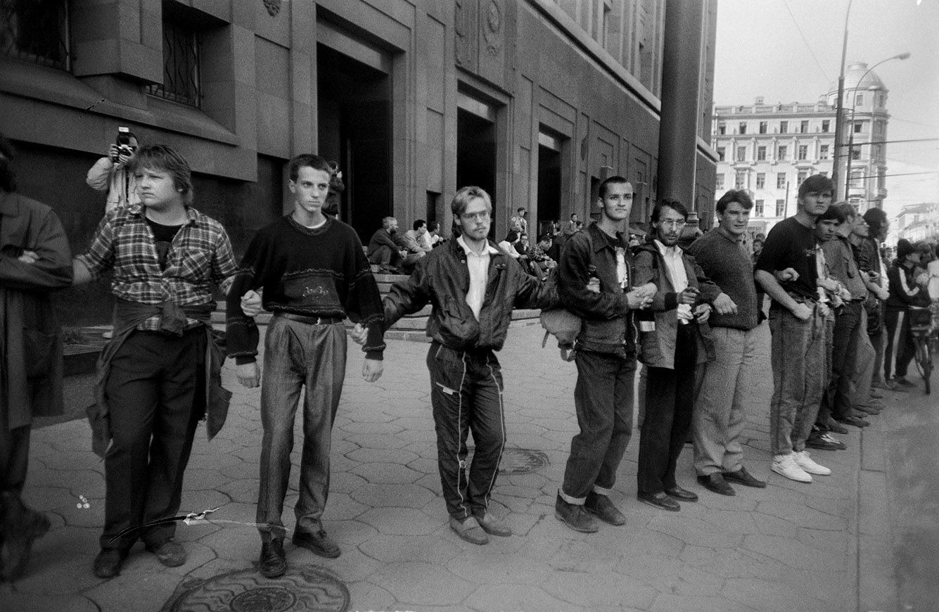 Everyone was in high spirits. But they feared pogroms. These guys are from the hundreds who were in the cordon at the White House — and they came here so that the KGB [building] wouldn’t get trashed, because there were provocative shouts from the crowd.
