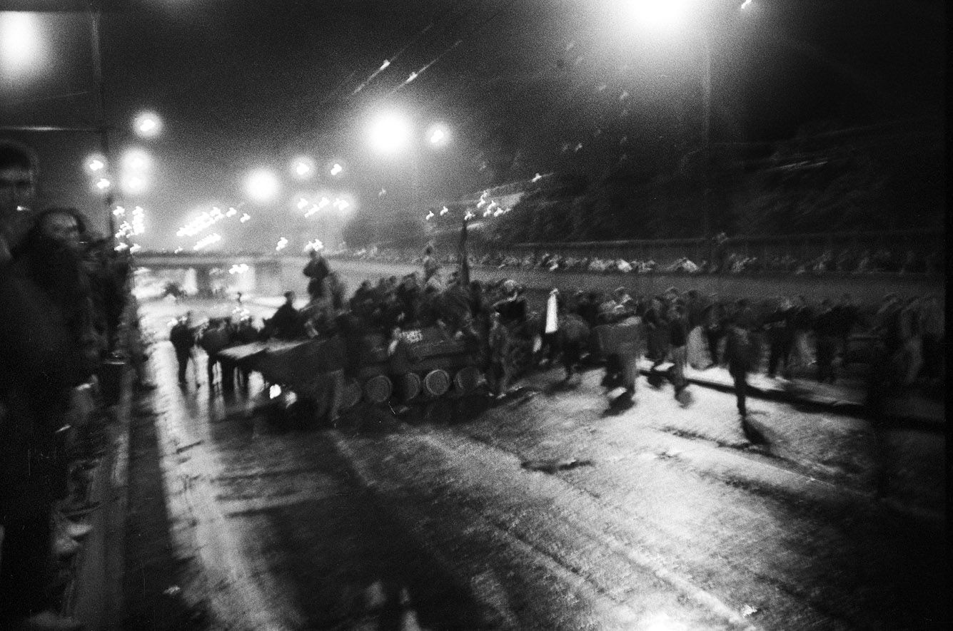 After we heard shooting in the cordon, we went forward into the tunnel, I saw an armoured personnel carrier, trolleybuses that were dented, some of them were on fire. People had already died. It seemed that the armored personnel carrier tried to hit a trolleybus that was blocking the exit one more time, and no one tried to stop it; there was blood on the asphalt. And then the mood around me changed: it was no longer scared — [there was] the feeling that there were so many of us and we had crossed some line and we were ready for anything. And this is, of course, a very dangerous situation. If the [Soviet Defense Minister Dmitry] Yazov hadn’t removed the troops, it would have been the flashpoint of the start of a civil war.