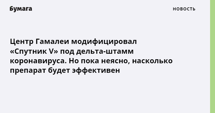 Центр имени Гамалеи уже разработал вариант «Спутника V», модифицированный специально под дельта-штамм COVID-19, однако его эффективность еще не подтверждена. Об этом пишет «Интерфакс» со ссылкой на главу учреждения Александра Гинцбурга.