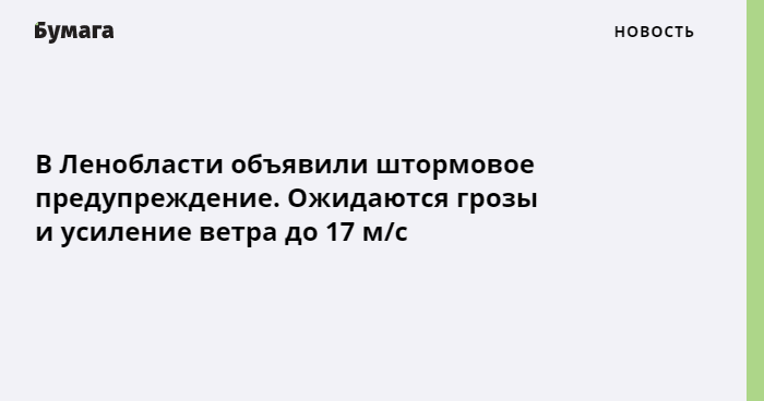 ГУ МЧС по Ленинградской области 19 августа объявило штормовое предупреждение в регионе.