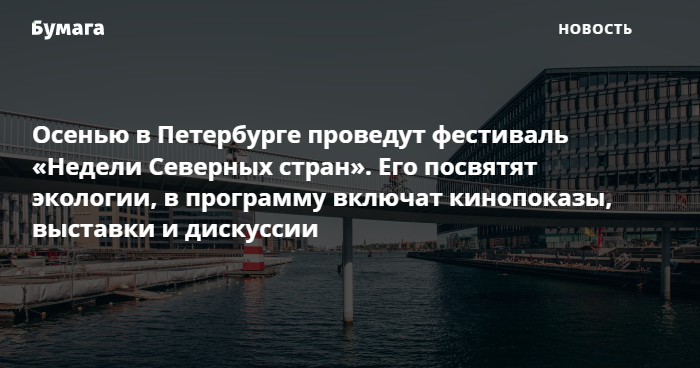 Осенью в Петербурге проведут фестиваль «Недели Северных стран»