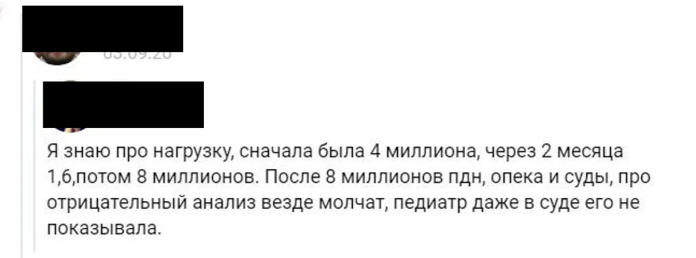 По словам Елены, Кристина сама в открытую говорила, что не дает ребенку необходимые препараты. «Она выкладывала изначально всю историю, вплоть до медицинских документов с открытым именем ребенка, и сообщала, что в роддоме выбрасывала терапию в унитаз», — рассказывает активистка.
