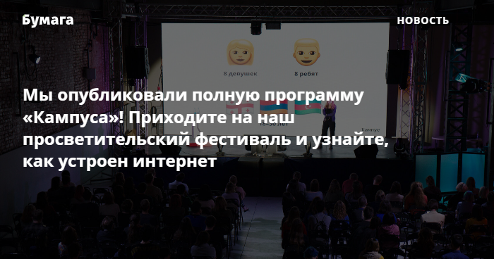 Мы опубликовали полную программу «Кампуса»! Приходите на наш просветительский фестиваль и узнайте, как устроен интернет