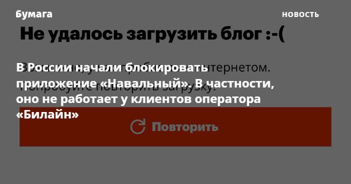 В России начали блокировать приложение «Навальный». В частности, оно не работает у клиентов оператора «Билайн»