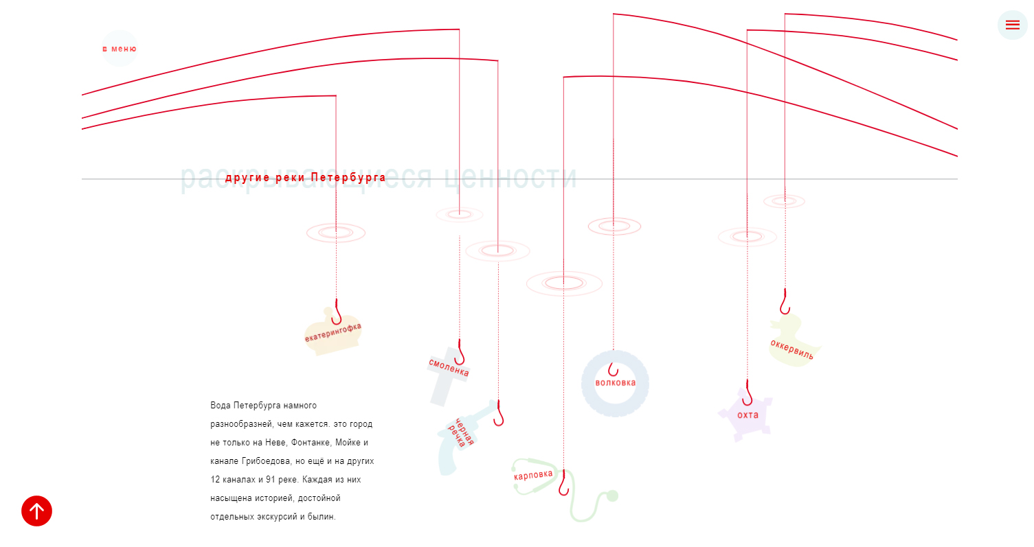 У сайта есть несколько разделов. В разделе «Ценное сейчас» на одной карте собраны все активности у воды в Петербурге: рестораны, пространства, пляжи и дикие места. В разделе «Малые реки» — малоизвестные среди туристов реки города. В «Идеи о будущем» авторы карты собрали проекты для развития водного пространства в Петербурге.