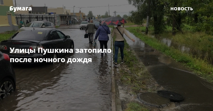 Обновление. Позднее в «Водоканале» «Бумаге» рассказали, что интенсивность дождя в Пушкине в два раза превысила расчетные значения — 12 мм за 20 минут. Это привело к скоплениям воды, так как сети рассчитаны на 7,2 мм за 20 минут. На горячую линию «Водоканала» поступило девять заявок о подтоплениях. По двум адресам они возникли из-за переполнения сетей, не находящихся на балансе «Водоканала». Сейчас аварийные бригады проверяют систему водоотведения, откачивают воду и очищают водоприемники от мусора.
