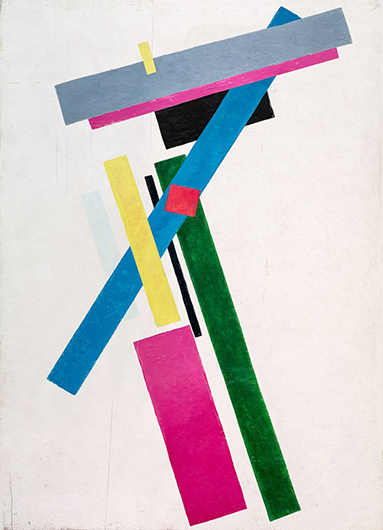 «Через систему взаимоотношений между формами, составляющими композицию, мы можем наблюдать, как различные напряжения, притяжения или отталкивания происходят от их расположения в пространстве, раскрывая тем самым типичную для Малевича игру магнетизма формальных, хроматических, пространственных и тональных качеств», — читаем мы в авторской аннотации к проекту. Любопытно, что сказал бы о желании актуализировать и заново интерпретировать его творчество спустя сто лет сам «пророк нового искусства», который не желал смотреть назад, на «бабушкин старый лифчик» мирового художественного наследия, видел искусство непрерывной эволюционной прямой и активно призывал художников двигаться только вперед, не оборачиваясь.