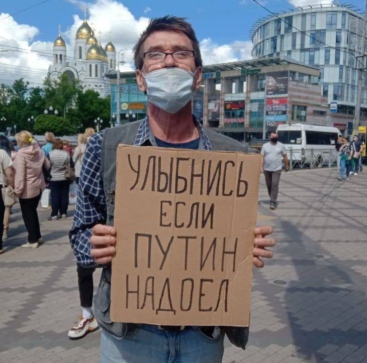 Сам он связал возбуждение дела с другими своими одиночными пикетами. Один из плакатов – с надписью: "Улыбнись, если Путин надоел" – он берет на пикеты регулярно.
