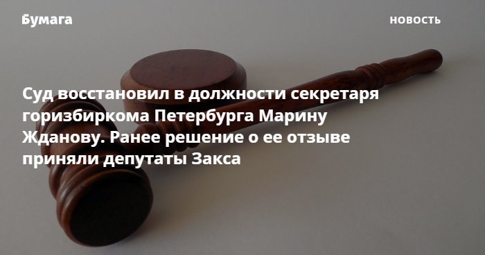 Ранее «Бумага» писала, что Заксобрание Петербурга проголосовало за отзыв Марины Ждановой из городского избиркома 18 августа. Инициатором выступил депутат-единоросс Андрей Васильев. При этом основания для приятия этого решения он не привел. Тем не менее городской парламент поддержал его инициативу. Горизбирком решил оспорить принятое решение в судебном порядке.