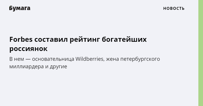 Forbes составил рейтинг богатейших россиянок. В нем — основательница Wildberries, жена петербургского миллиардера и другие