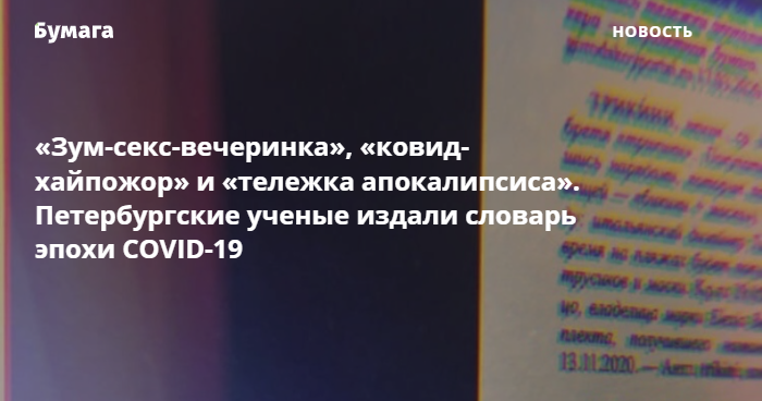 Петербургские ученые из Института лингвистических исследований РАН составили словарь русского языка коронавирусной эпохи. Документ из 550 страниц опубликован на сайте учреждения, он содержит 3,5 тысячи слов и словосочетаний.