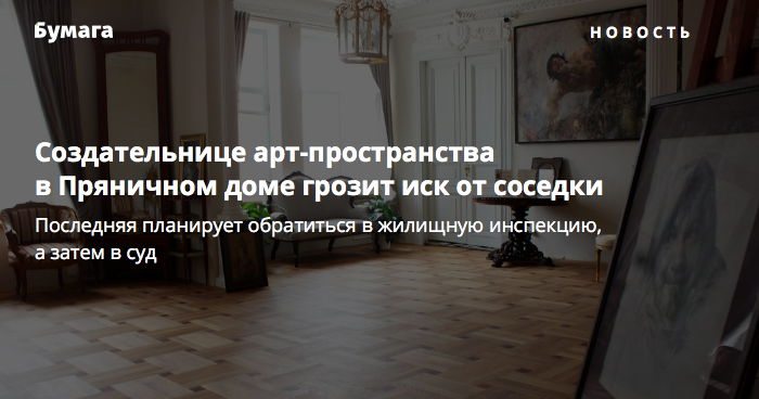 Создательнице арт-пространства в Пряничном доме грозит иск от соседки