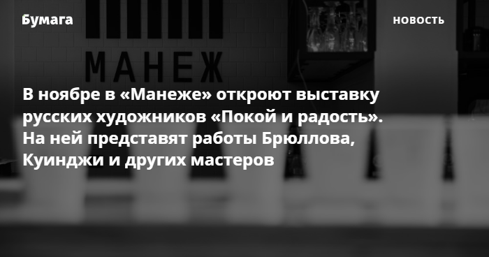 В ноябре в «Манеже» откроют выставку русских художников «Покой и радость»