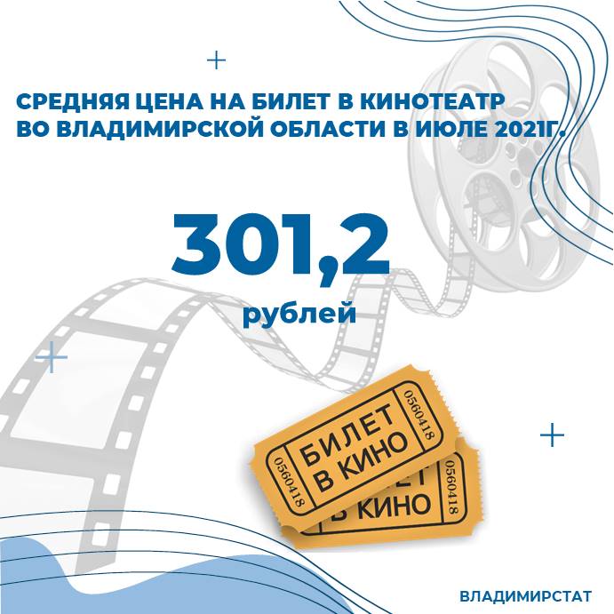 Кроме того, повысилась средняя цена на билеты в кинотеатрах региона. В июле 2020 года посмотреть фильм можно было 278,5 рублей, а сейчас стоимость одного билета составляет 301,2 рубль.