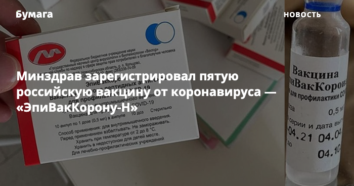 Минздрав зарегистрировал пятую российскую вакцину от коронавируса — «ЭпиВакКорону-Н»