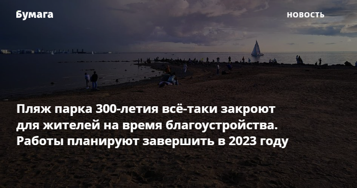 В администрации Приморского района «Бумаге» сообщили, что парк находится в ведомстве комитета по благоустройству, только там могут дать точный комментарий. В комблаге подтвердили, что пляж из-за работ закроют на два года.