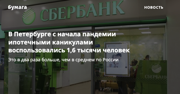 С начала пандемии ипотечными каникулами в Петербурге воспользовались 1,6 тысячи человек — это вдвое больше, чем в среднем по стране. Об этом сообщает «РБК Петербург» со ссылкой на пресс-службу Центробанка РФ.