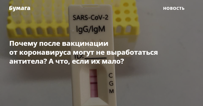 После вакцинации от коронавируса антитела у некоторых людей могут не появиться вовсе или выработаться в малом количестве. «Бумага» кратко рассказывает об обеих ситуациях, исходя из того, что известно на данный момент.