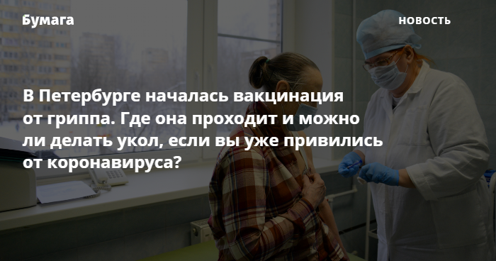 В Петербурге началась вакцинация от гриппа. Где она проходит и можно ли делать укол, если вы уже привились от коронавируса?