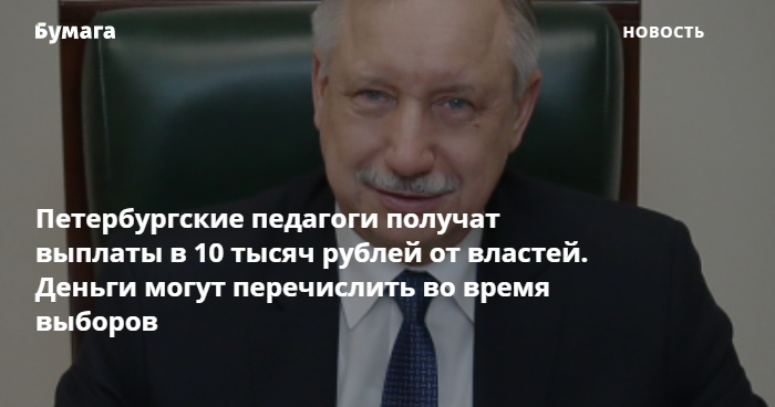 Петербургские педагоги получат выплаты в 10 тысяч рублей от властей. Деньги могут перечислить во время выборов