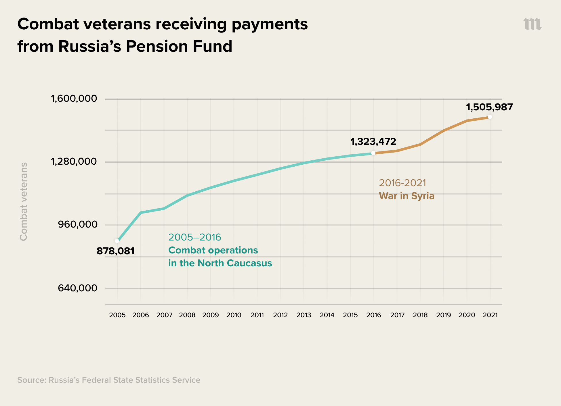 In 2015, Russia launched a military intervention in Syria. The following year, soldiers who served in this campaign became eligible for federal benefits, which is why the number of veterans has started to spike again in Russia.