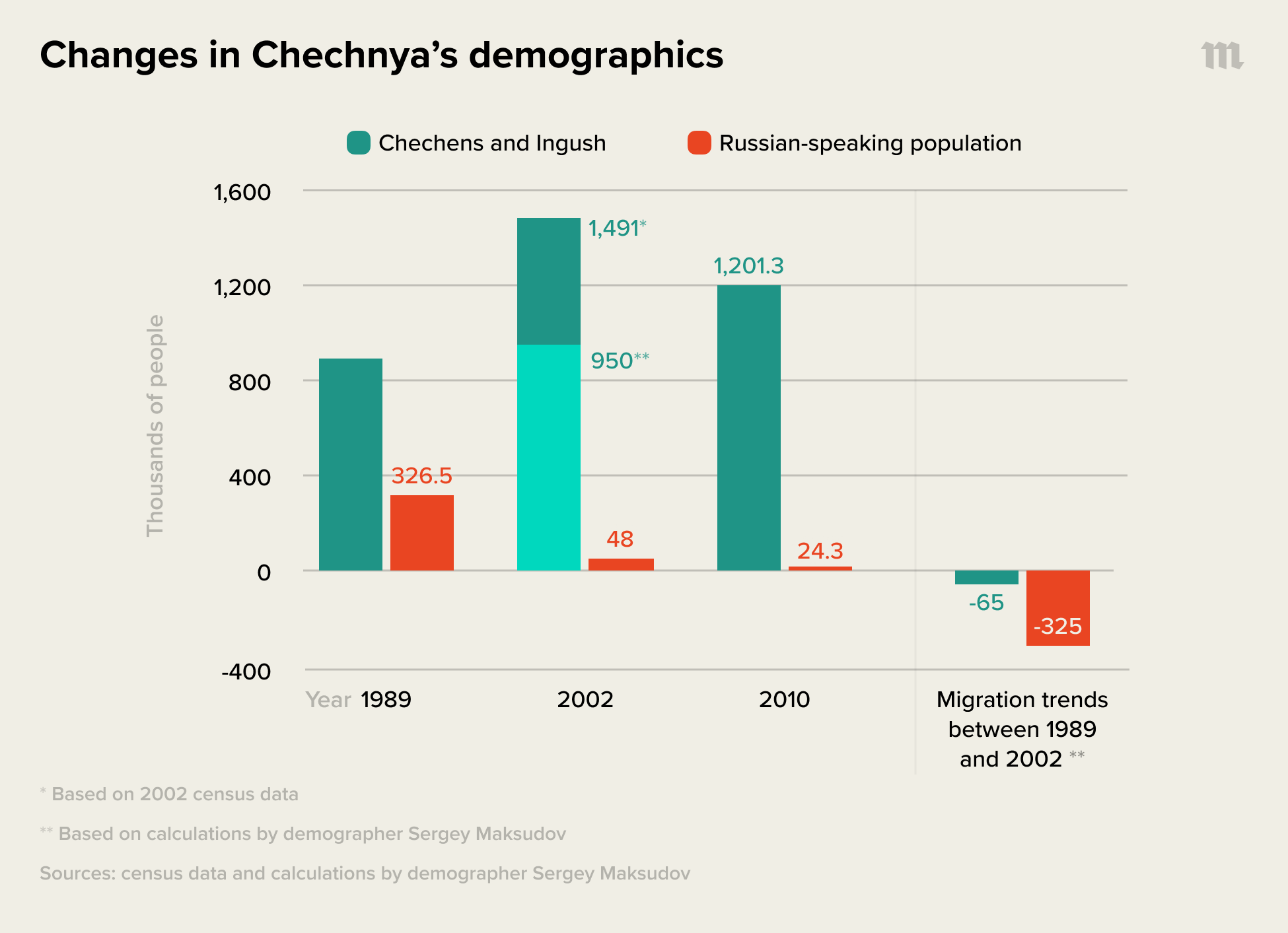 Data from Russia’s 2010 census reflected the “normalization” of the Chechen population and a further decline in the number of Russians and other Slavs. In other words, two wars effectively transformed Chechnya into a monoethnic republic.