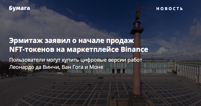 Эрмитаж заявил о начале продаж NFT-токенов на маркетплейсе Binance. «Бумага»
